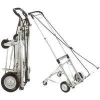The Model 8803 combines the 7703 Super Cart with a unique click-n-go rear wheel assembly that stabilizes loads and takes the weight burden off your arms and back. 400 pound capacity, weighs only 20 pounds. Rear wheels fold up flush to the cart for easy storage. Users can easily raise and lower rear wheels with their foot, no more bending
